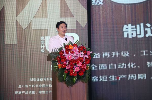 圣象家居事业部总经理曹刚先生为本次发布会致欢迎辞。曹总表示,我们积极思考、上下求索。在新时代、新环境下突围、发展之路,站在巨人的肩膀上,回望大家居各品类一路峥嵘岁月,开启木作一体化创新探索之旅。