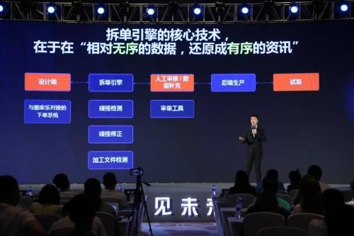 酷家乐全屋定制副总裁吴锴亮现场发布酷家乐数字化引擎,基于企业经营的三大核心板块:营销设计、产品研发和系统流程,从客户(People)、产品(Product)、系统(Process)三个方面,赋能企业经营生产管理的全链路信息化。