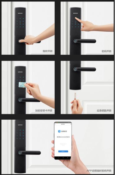 联想R2 WiFi版指纹锁支持指纹、密码、加密感应卡、远程临时密码、应急钥匙五种方式开锁,可以从容应对用户在各种场景下的开锁需求,大大提升了用户进入家门的便捷性体验。