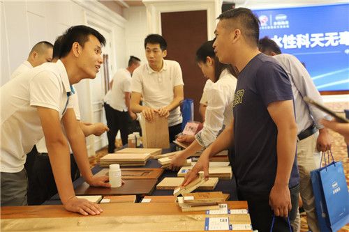 当天的展品展示现场,南宁科天水性科技有限责任公司技术人员对水性科天材料、定制产品、模式等进行全方位推介,吸引了100多家地产企业、建筑企业参会。