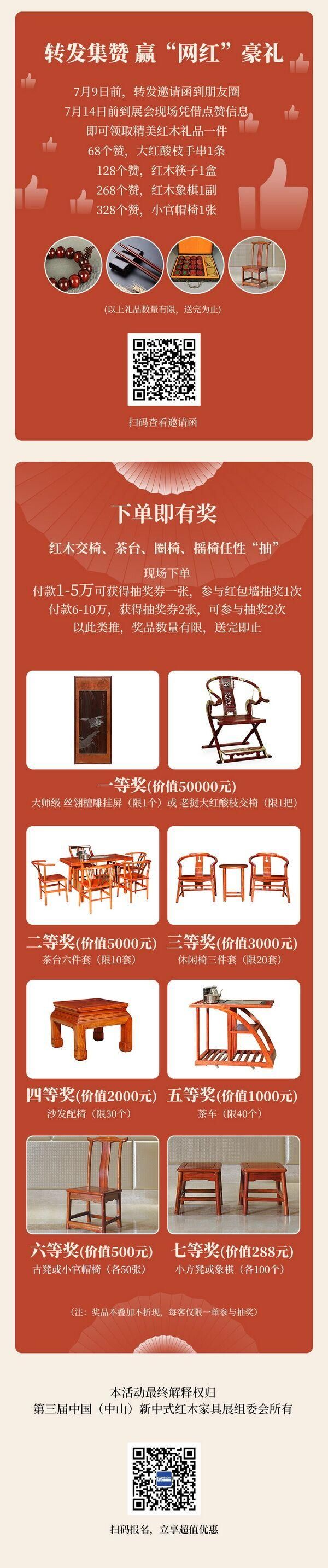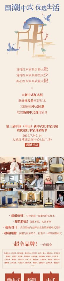 第三届中国(中山)新中式红木家具展暨优选中式红木家具采购节将于7月9日-14日在广东中山大涌红博城会展中心举行。