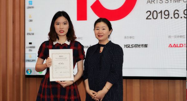 亚洲照明设计师协会(AALD)主席严永红女士为第一名得主李雪尔女士颁发证书