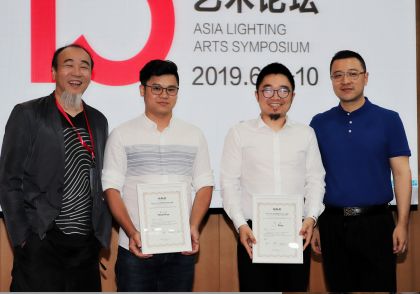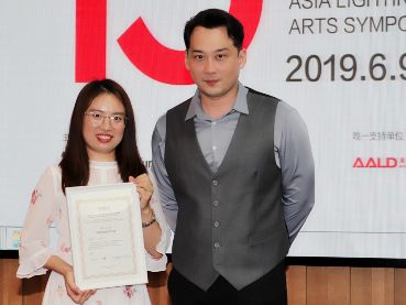 亚洲照明设计师协会(AALD)常务理事陈翰彤先生,亚洲照明设计师协会(AALD)资深会员杨贇先生为第三名得主秦敏先生及潘锐先生颁发证书