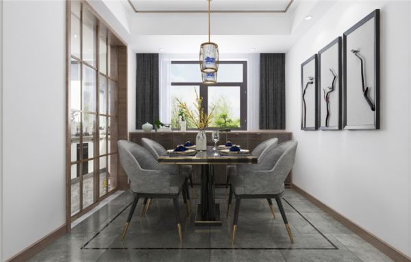 黄金山水郡三室两厅现代中式风格装修效果图