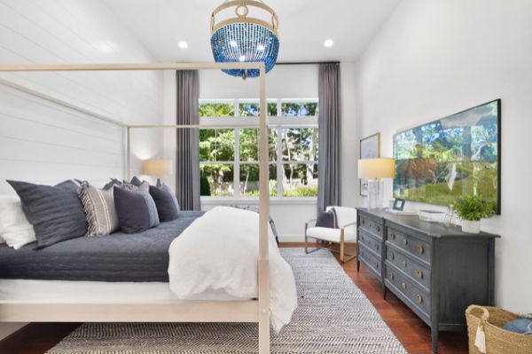 你可以选择普通的墙壁,图案的窗帘和羽绒被套,反之亦然,但有一种说法是保持冷却和醇厚,因为大量的图案和颜色会使大脑过度运转并使其更难入睡。