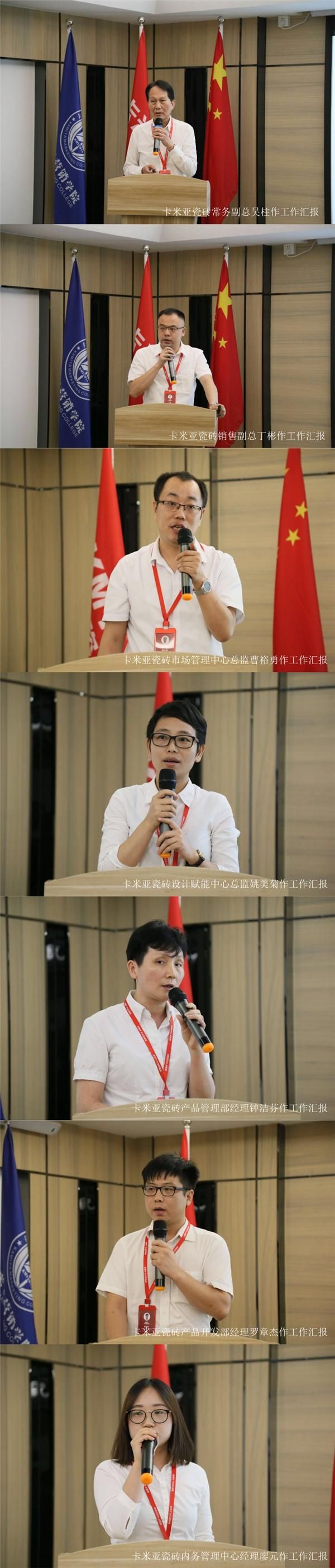 会上,卡米亚瓷砖销售管理中心、产品管理中心、设计赋能中心、市场管理中心、内务管理中心各职能部门负责人先后对2019上半年部门总结及下半年工作规划进行汇报与分享。