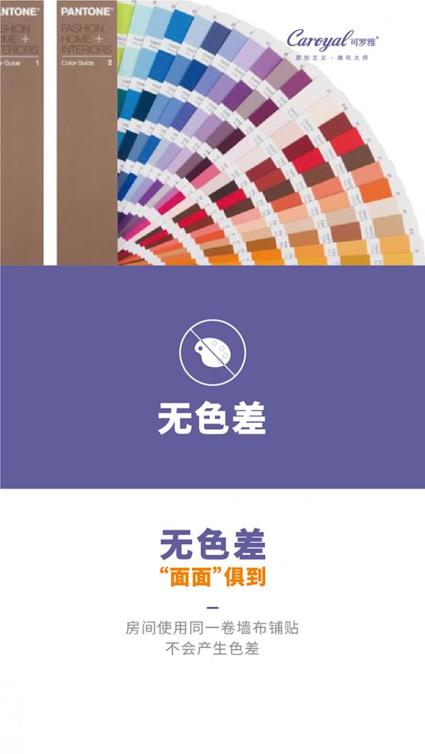 而可罗雅墙布,因为全屋使用同一卷墙布裁剪,所以可彻底避免色差问题。全屋墙布,浑然一体!无缝墙布这一特色,在可罗雅身上更发挥得淋漓尽致。