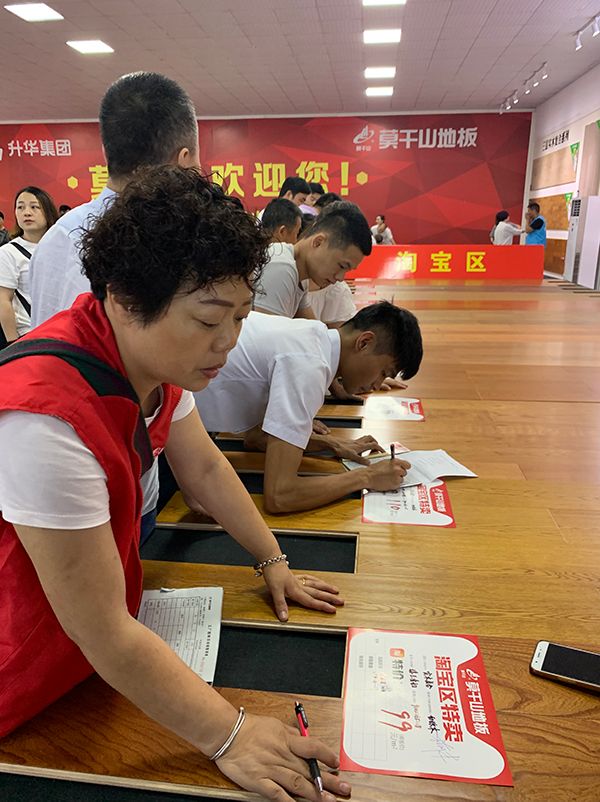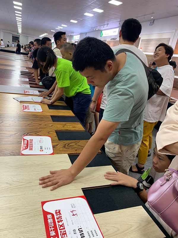 本次厂购机会难得,很多消费者选好心仪地板就直接找工作人员下单,非常果断。虽然此次厂购是区域活动,只有来自浙江杭州、嘉兴、湖州、绍兴、金华、义乌几个城市的客户,但依然斩获了500余单的好成绩。小编不得不感叹,浙江区的客户真是慧眼识珠,堆金积玉,是莫干山地板的伯乐们没错了!