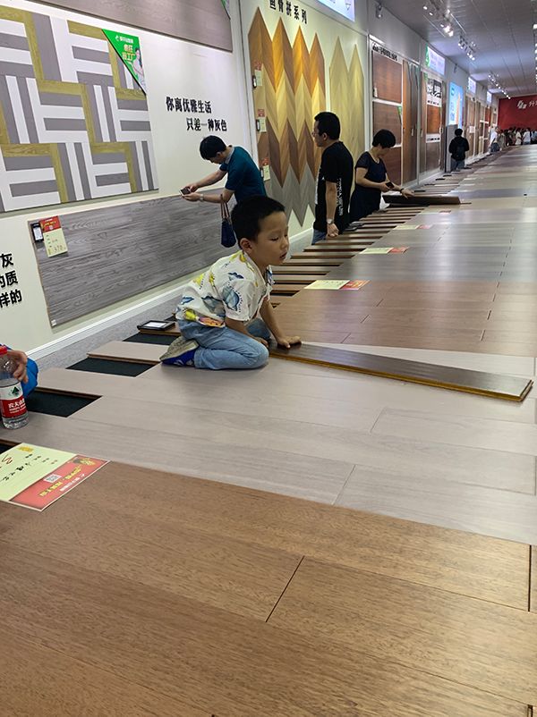 小莫粉也是非常热情的,在地板上观察得非常认真非常仔细,顺便也替爸爸妈妈体验一番莫干山地板的强大实力,安全、环保、耐磨、防滑,这么多优点,绝对是守护孩子的必备好物啊!