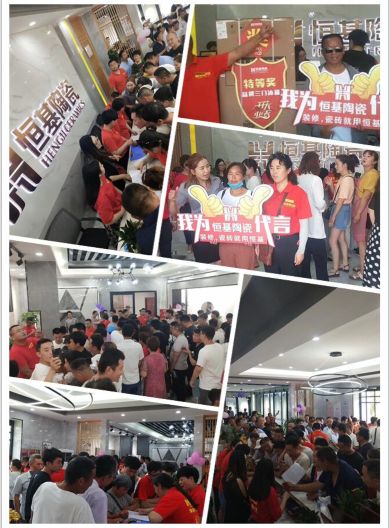 恒基品牌总经理贺棋军携总部众销区经理、恒基陶瓷安徽、江苏、河南等全国其他区域的经销商、来自商丘当地各界的领导和嘉宾、商丘的业主朋友们以及同行异业渠道朋友们等500多人共聚一堂,共同见证商丘恒基陶瓷的开业盛况。
