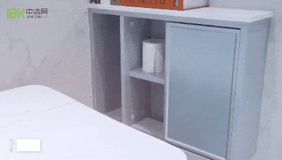 功能柜,开放式与封闭式结合的收纳设计,常用与不常用物品可以合理放置,柜子底部带有毛巾杆,可以放置常用毛巾,使用方便。
