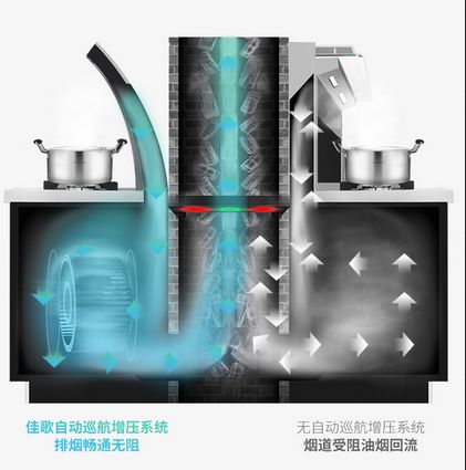对了,你能保证自己的油烟不出现,能保证别人家的油烟也远离你吗?别怕,你不能,佳歌集成灶能保证!佳歌采用了自动巡航增压的技术能自动识别排烟的高峰状态,调整到400Pa,这样排烟自然就不会倒灌了。