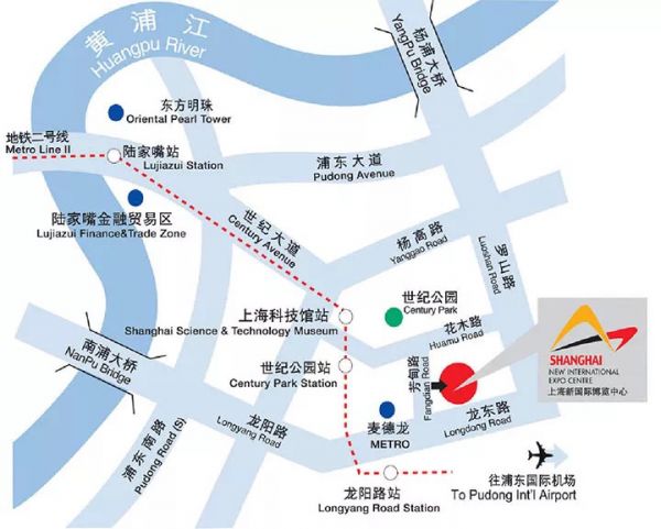 建议:乘坐地铁至上海新国际博览中心是最便利的交通方式,2号线地铁龙阳路站下,需步行15分钟左右,较不便利,您可乘坐地铁7号线至“花木路站”,出了地铁口便是2号登陆厅。