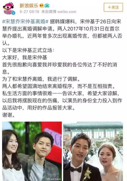 上周五大早上爆出新闻,明星夫妇宋慧乔宋仲基,宣布离婚!从结婚到离婚,双宋婚姻持续时间只有一年零八个月,共604天: