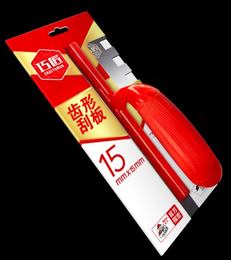 俗话说,巧妇难为无米之炊。同样,一名巧匠的诞生也离不开好用不贵的工具。齿形刮板是十多年前德高在推广瓷砖胶薄贴工艺时就开始宣导使用的。巧匠齿形刮板在生产时遵照欧盟标准,根据中国墙面平整度情况以及工人使用习惯精选6mm、10mm、15mm三种规格。