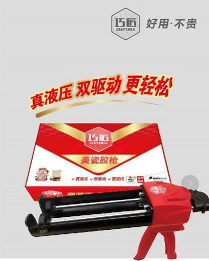 美缝师傅在美缝施工中会使用到另一个必不可少的工具——美瓷胶枪。巧匠液压美瓷胶枪性能明显优于普通美瓷胶枪。首先,普通美瓷胶枪采用的是纯机械式传动,打胶很费力,而巧匠美瓷胶枪采用液压助力,轻松更高效;其次,巧匠胶枪采用金属框架结构,耐用性明显优于普通塑料胶枪。此外,双驱动的设置让AB组份均匀混合,解决了单驱动胶枪混合不匀造成不干的现象;最后,普通胶枪尾部的泄压阀为塑料材质,材质本身的柔韧性会使泄压操作费劲,巧匠胶枪采用铝合金材质,实现轻松泄压。