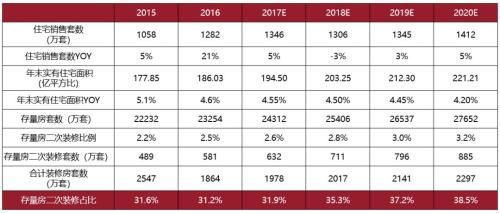 当下中国房地产市场正在经历从“增量时代”向“存量时代”的转换,且部分一二线城市已经实际意义上进入了存量房时代。存量房依然成为家居行业的新蓝海,一方面,存量房交易产生装修需求,另一方面,我国第一批商品房建成于80年代,按照住房翻新周期为10-15年计算,大量老房已经达到“换装”年限,伴随而来的是巨大的旧房翻新装修需求。结合统计年鉴数据,估算到2020年,全国存量房总套数将超过2.7 亿套,存量房二次装修将提升至885万套、占比38.5%,存量房再装市场的家具更新需求巨大。