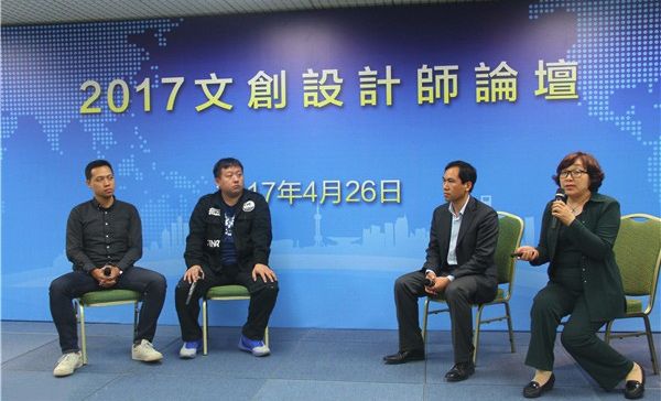 ▲泓文博雅艺术馆馆长潘海英(右一)参加文创设计师论坛
