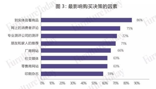 但访问实体店也是至关重要的,超过八成的消费者(86%)表示,到门店亲自查看产品是主导选择最有影响力的因素。