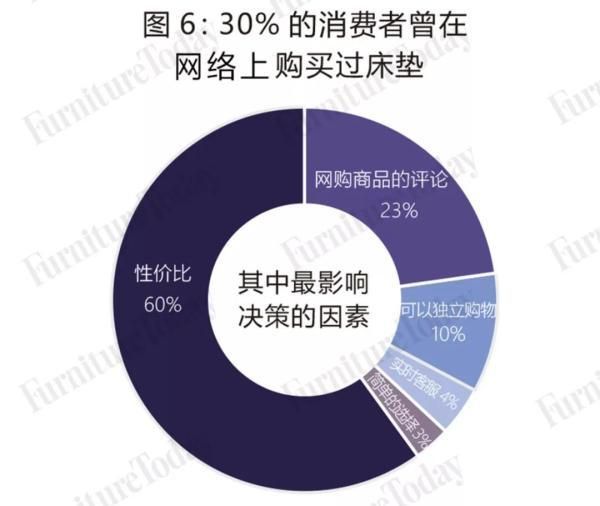 60%的网络购物者表示:性价比是网购床垫最具影响力的因素。