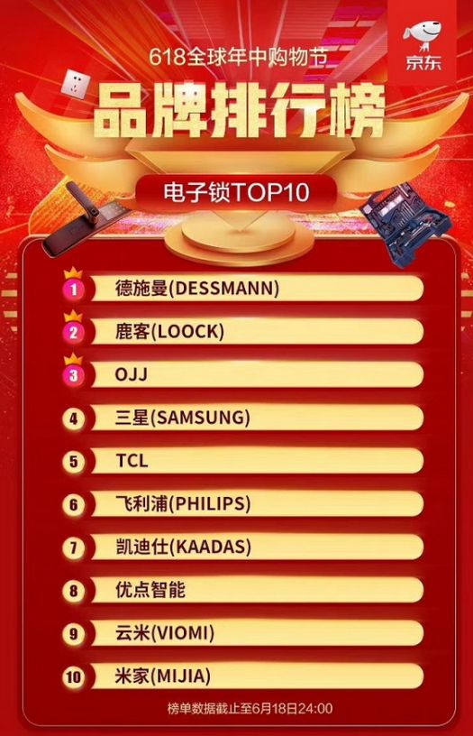 天猫数据显示,在168期间搜索智能门锁的品牌词TOP5为:凯迪仕、三星、德施曼、飞利浦、耶鲁,并且像德施曼、凯迪仕等企业在618期间都取得了优异的成绩。