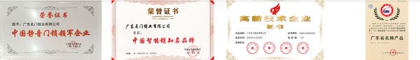 自2013年以来,名门战略定位静音门锁产品的开发,从第1代静音到第4代静音门锁,名门一直在行业里技术领先,发明专利申请82项,已获批32项;投资百万,建立行业第1间静音实验室;成为制锁行业国家及行业标准起草组长单位,1项国家标准、2项行业标准的起草组长单位,5项行业标准的参编单位。