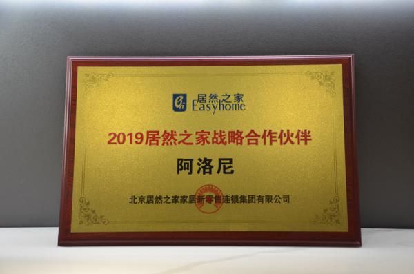 盛典上,作为国内浴室柜行业领导品牌,阿洛尼浴室柜凭借强大的品牌综合实力,以及长期的良好战略合作关系,荣获“2019年居然之家战略合作伙伴”称号。