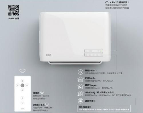 智能检测空气质量控制新风进出;超大风量过滤空气,净化空气总量达270m³/h;高速新风140m³/h,排风70m³/h,畅享新风;低速新风85m³/h,排风40m³/h,采用DC节能电机技术,达到运行静音降噪、能耗降到最低,让你安心舒眠一整夜。