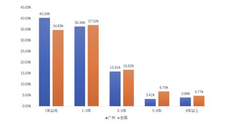 (图:全国-广州城市租房周期人群占比图,来源:中国青年租住生活蓝皮书)