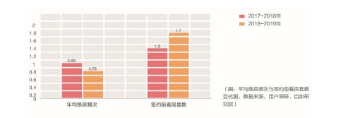 (图:全国平均换房频次和签约前看房套数变化图,来源:中国青年租住生活蓝皮书)