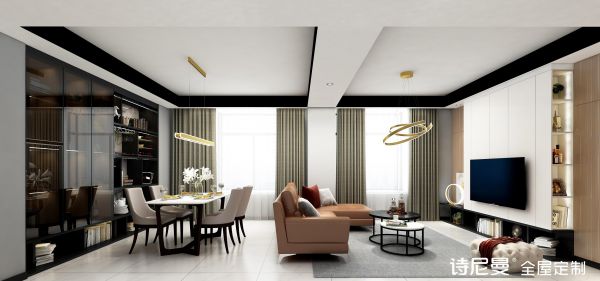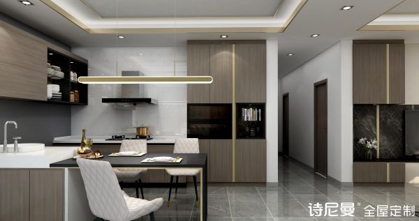 3、将全屋定制产品、橱柜产品、木门、门窗等产品融合,体现诗尼曼一站式整装定制、全方位的大定制格局。