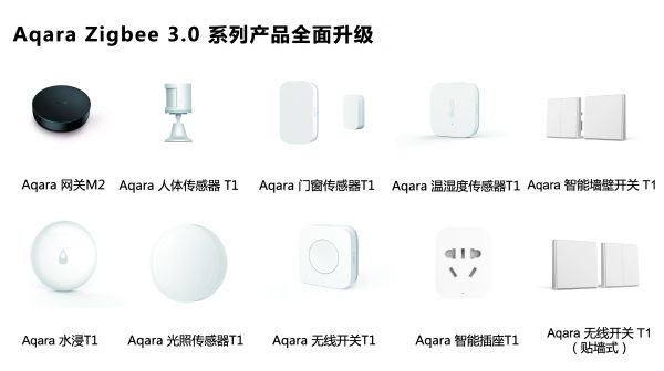 7月8日,Aqara Zigbee 3.0系列产品全新升级发布。此次首批上线的Aqara Zigbee 3.0智能家居系列产品有Aqara网关M2, Aqara人体传感器T1, Aqara门窗传感器T1, Aqara温湿度传感器T1, Aqara智能墙壁开关T1, Aqara水浸传感器T1,Aqara光照传感器T1,Aqara无线开关T1,Aqara智能插座T1,Aqara无线开关T1(贴墙式)。