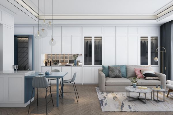 顶天立地的沙发背柜,遵循对称之美,大方得体;挂衣区、叠放区,区区分明,不用费心收纳,各种物品都有属于自己的一隅之地,便于日常生活的使用,