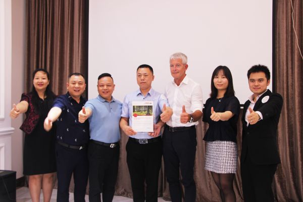 爱格集团中国区华中总代理坪彗机构向罗西家具授予了爱格“湖南特许授权经销商”荣誉证书