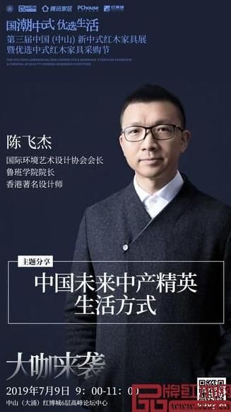 未来家居行业将是“得新中产者得天下”的格局,那么中国未来中产精英的生活方式将是怎样的?7月9日,国际环境艺术设计协会会长、鲁班学院院长、香港著名设计师陈飞杰将在新中式红木展上揭晓答案。