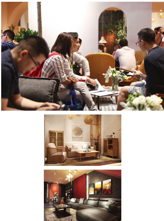 在林氏木业“生活无界”主题馆中,从单件设计到系列家具,从软装搭配到家居风格,通过产品结构、视觉模块的重组设计,打破产品和空间的应用界限,由创意性的空间布局带给参观者可观可触可感的场景化体验。
