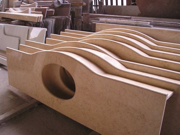 1、洗面盆台面板尺寸没有规定,主要看面积,根据面积灵活处理,台面长度要大于洗面盆长度一边10公分以上,宽度内外不能小于6公分,不然,石材台面会断裂,有的洗面盆出水是固定在石材台面上的,这种类型的台面靠墙的长边内还要留宽一些才能上得起给水龙头。