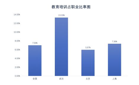 作为著名的教育文化城市,武汉有着武汉大学、华中科技大学等多所985、211名校。据相关媒体报道,武汉在校大学生人数全国第一,全市教育人口约占全市人口的1/4。在蓝皮书关于租住人群的职业画像中,武汉地区从事教育培训行业的占比位居榜首,以13.33%的占比成为该领域唯一超过10%分水岭的城市,值得一提的是,该比例等于北京及上海的比例总和。
