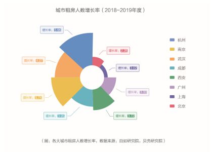 同时,在租房人数增速上,蓝皮书显示,过去一年武汉、杭州、南京等新一线城市租房人数的增长速度,大于北京、上海、广州等一线城市的增长速度,其中,武汉以4.07%的增速位列第三。并且武汉区域租房时长1年以内的占比最高,新客增量势头迅猛。不难看出,伴随武汉等新一线城市的迅速崛起,“北上广深”不再是年轻人的首选。