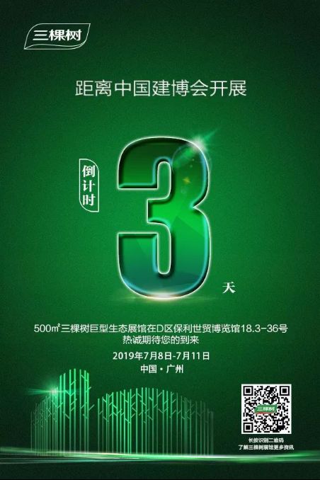 7月8日-11日,三棵树诚邀您一起来见证中国大家居行业盛况,500㎡巨型生态馆在D区保利世贸博览馆18.3-36号与您不见不散!