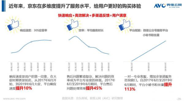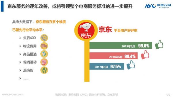 与此同时,《白皮书》显示,京东针对消费者服务痛点从2012年至今一直在不断推出并实行服务新政,从售前、售中到售后,为消费者提供全流程服务。这让用户在感受更好购买体验的同时,也让京东的用户好评率从2017年6月的97.5%上升到2019年6月的99.0%。可见京东家电对服务的高要求不仅得到了消费者的高度认可,其也引领着电商服务标准的进一步提升,带动了家电消费体验全面升级。