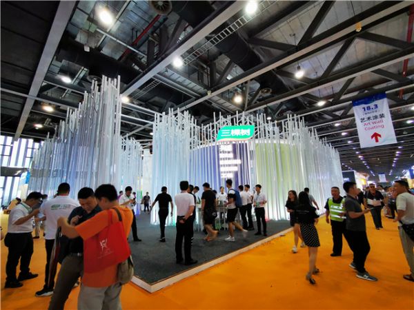2019年7月8日至7月11日,2019中国建博会暨第21届中国(广州)国际建筑装饰博览会上,位于D区保利世贸博览馆18.3-36号的三棵树500㎡巨型生态馆隆重开幕。本次展会是国内规模最大的建材行业博览会,被誉为大家居建装行业的“大年初一”,见证中国大家居建装行业五大“融合”,涵盖大家居建装行业全产业链,含定制、智能、系统、设计四大主题,核心题材几乎囊括了行业内所有一线品牌,被家居行业公认为品牌宣传、产品展示、信息交流和业务拓展的重要平台。