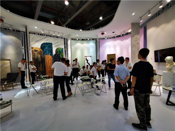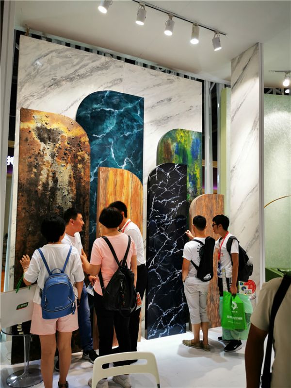 展馆中错落有致地展示着三棵树系列主打产品,涵盖内外墙涂料、防水、保温、地坪、辅材等品类,其中独具特色的艺术漆、天然板以及“涂装一体化”“六位一体”展示区等赢得业内人士频频点赞。