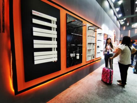 把手、置物架、晾衣杆等墙体配件,整整一面墙都是它们的华丽展示区,大理石、磨砂风格的底板构成利落的几何图案,一目了然呈现展品的同时,也以错落叠加的不对称美学满足着参展者挑剔的视觉体验验。SÄFOR赛福五金产品简约轻奢之美,让参观者纷纷拿起手机,记录下他们认为的最好看的产品。