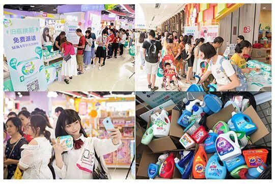 5月,菁华在香港开启了“旧瓶换新”首场活动,获得了市民们的热烈响应。市民们带着家里的洗衣液旧瓶,在菁华展位前排起了长龙,等待用旧瓶免费置换菁华洗衣神珠。