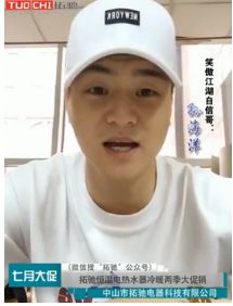 7月拓驰热水器冷暖两季大拼购,拓驰为大家带来因为综艺节目“笑傲江湖”而吸粉无数的“自信哥”孙海洋。助力拓驰本次7月活动,并为我们活动点赞。
