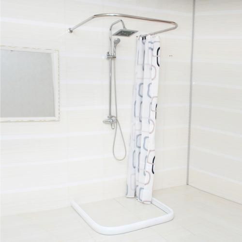 如果只需两面有墙,那浴帘杆可以选择圆弧钢管固定在墙上,这种固定圆弧钢管有一个弊端就是于受力不均,时间长了容易发生松动。