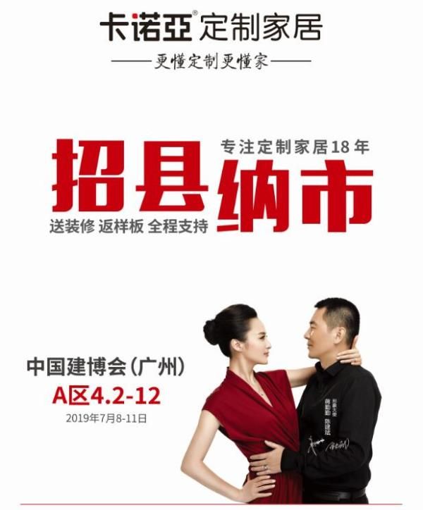 加盟卡诺亚,跟随1000+家品牌专卖店,广东广州、广东清远2大生产基地,一起创造新的财富传奇。2019年7月8-11日第21届中国建博会(广州),卡诺亚展位A区4.2-12诚邀您莅临!7月10日在广交会展馆A区1.2馆会议论坛区举办的“卡诺亚空间定制及设计高峰论坛”,同样邀您光临!