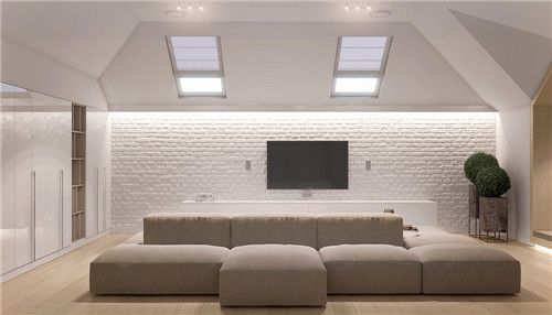 客厅整体简约大气,舒适的沙发可以容纳一家人在上面玩耍,空间以白色为主,干净整洁,但是显的有点单调,乏味,但是电视背景墙整体却凹凸不平,给人一种视觉上的冲击,显的整个家简洁却又不缺少活力。错层的背景墙非常具有立体感,其条纹和凹凸感纹理也让空间充满质感和魅力。
