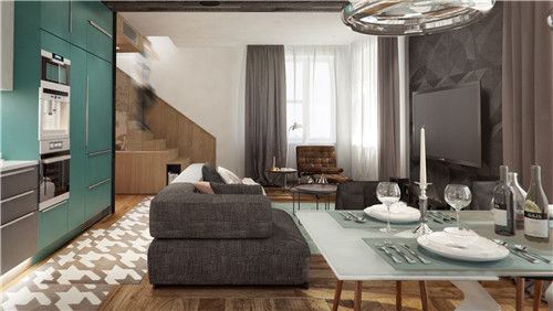 乍一看,墙面和家装显的格格不入,但整个家的点睛之笔就在这面墨绿色的墙上,因为主人低调的性格,我们选用了比较清新、自然的颜色。淡淡的墨绿颜色墙面,客厅都变得雅致、温馨。